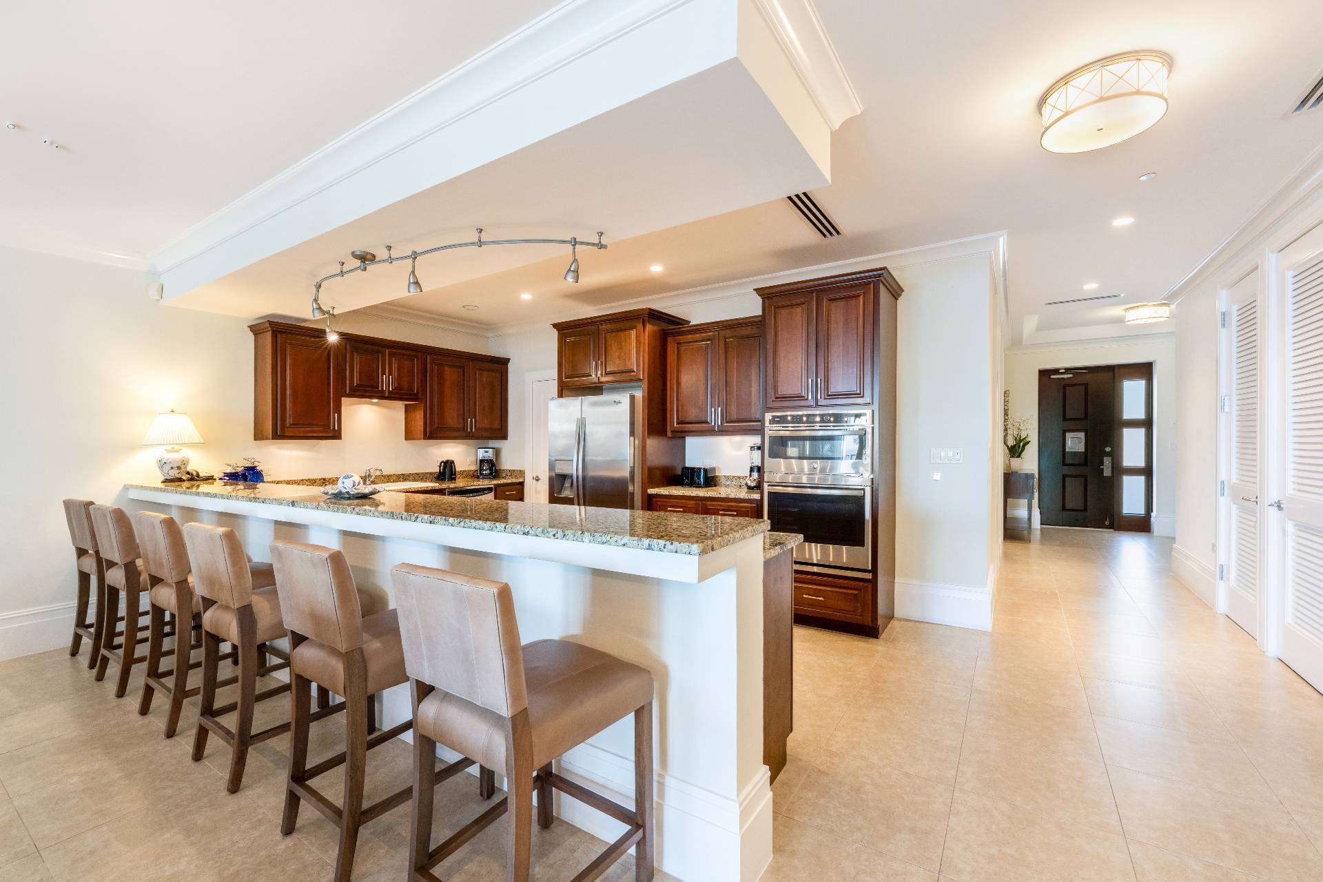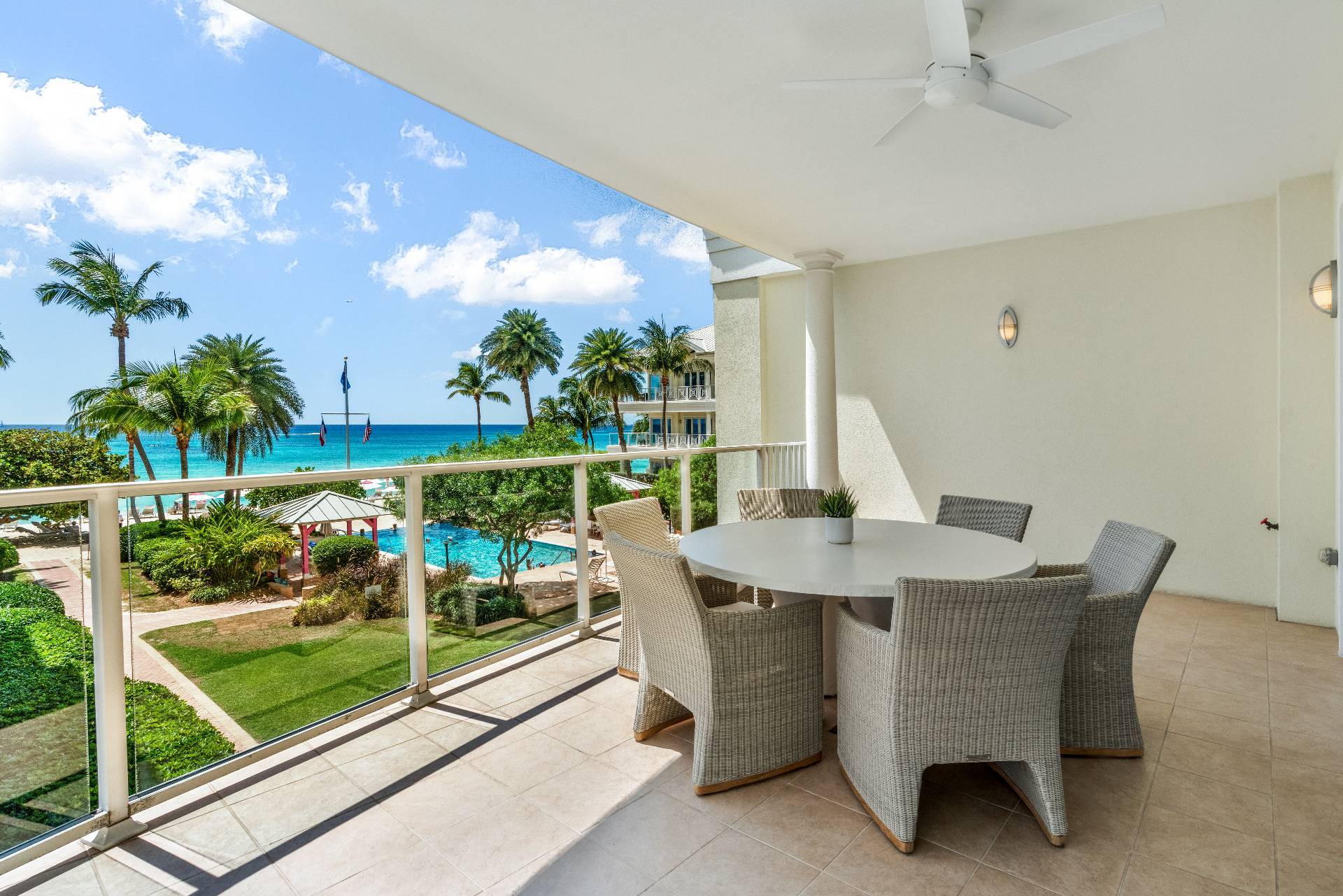 Elegante unità all’angolo al secondo piano, direttamente sulla celebre Seven Mile Beach di Grand Cayman. La proprietà offre tre ampie camere da letto e tre bagni raffinati, con circa 2.700 piedi quadrati di spazio abitativo luminoso e open space. I soffitti alti e le ampie vetrate offrono una vista panoramica sull’oceano, mentre la cucina gourmet con piani in granito e elettrodomestici in acciaio inox è ideale sia per cucinare che per intrattenere gli ospiti.