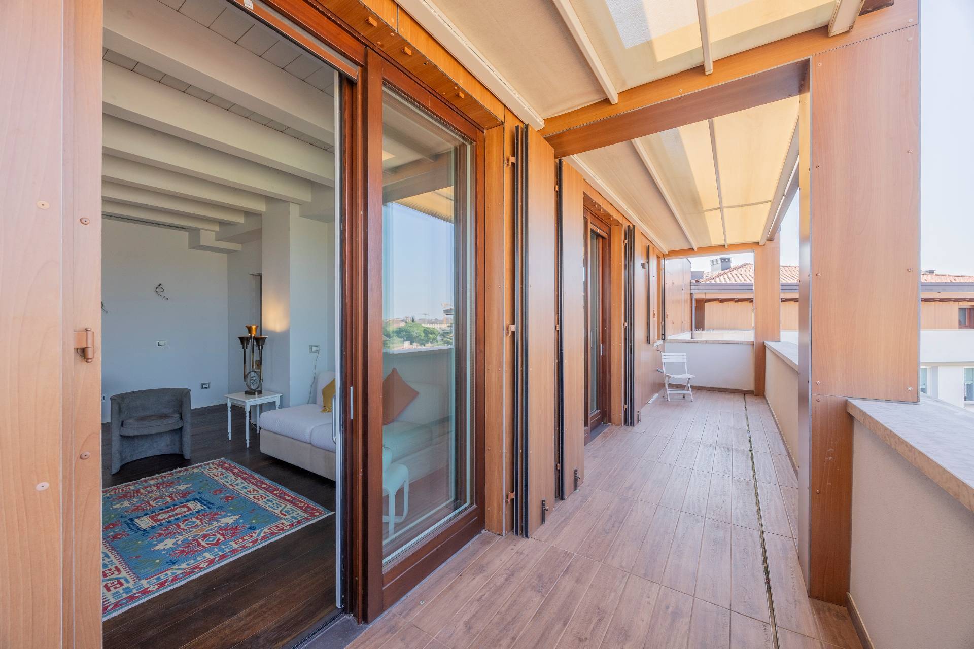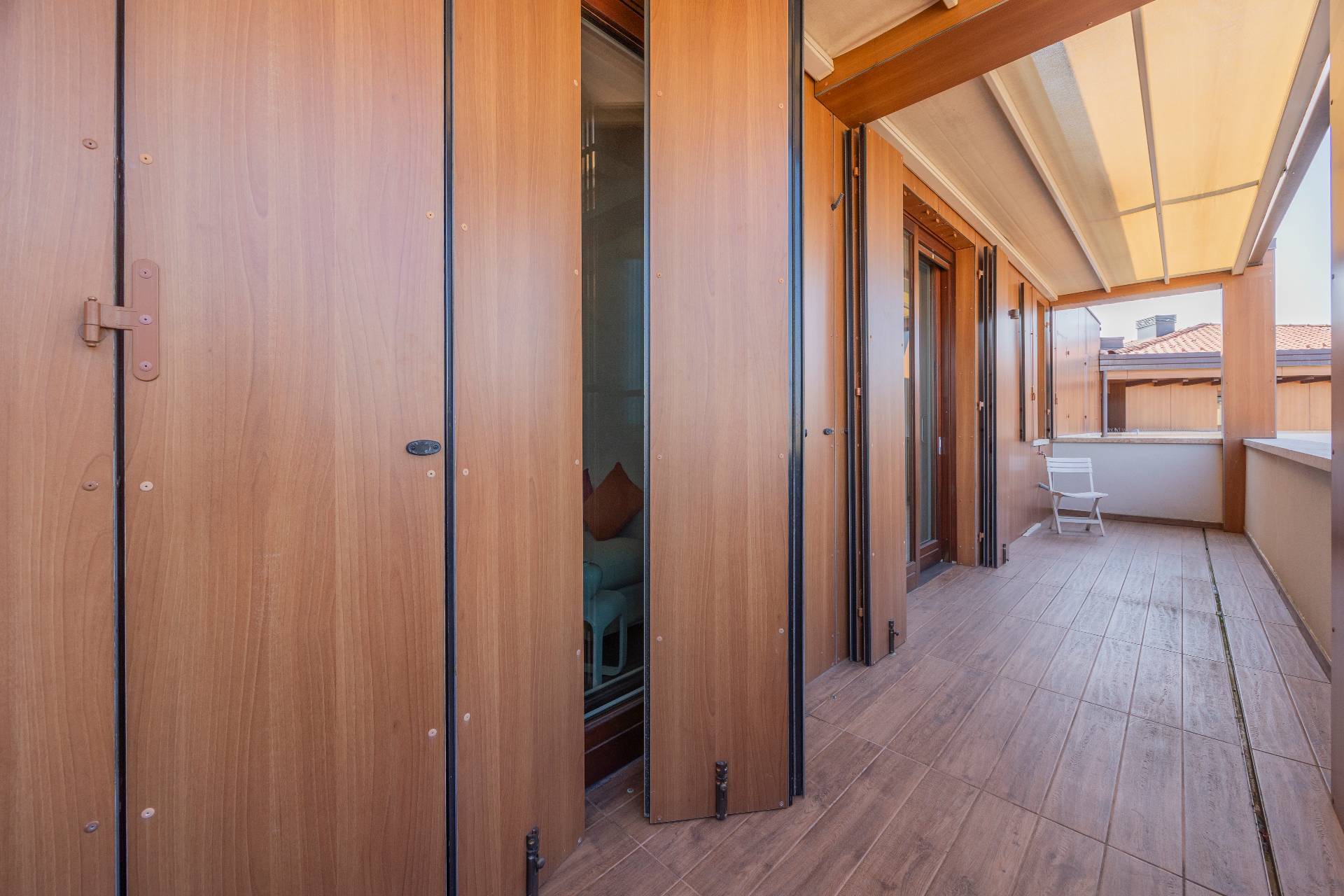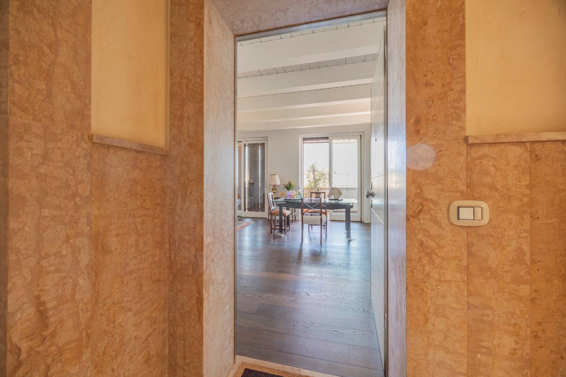 L’appartamento si trova al quinto e ultimo piano, una posizione che regala massima privacy, luminosità naturale e una vista aperta che valorizza ulteriormente gli spazi interni. Il terrazzo, particolarmente ampio, rappresenta un valore aggiunto: ideale per pranzi e cene all’aperto, momenti di relax o per creare un angolo verde esclusivo in città.
