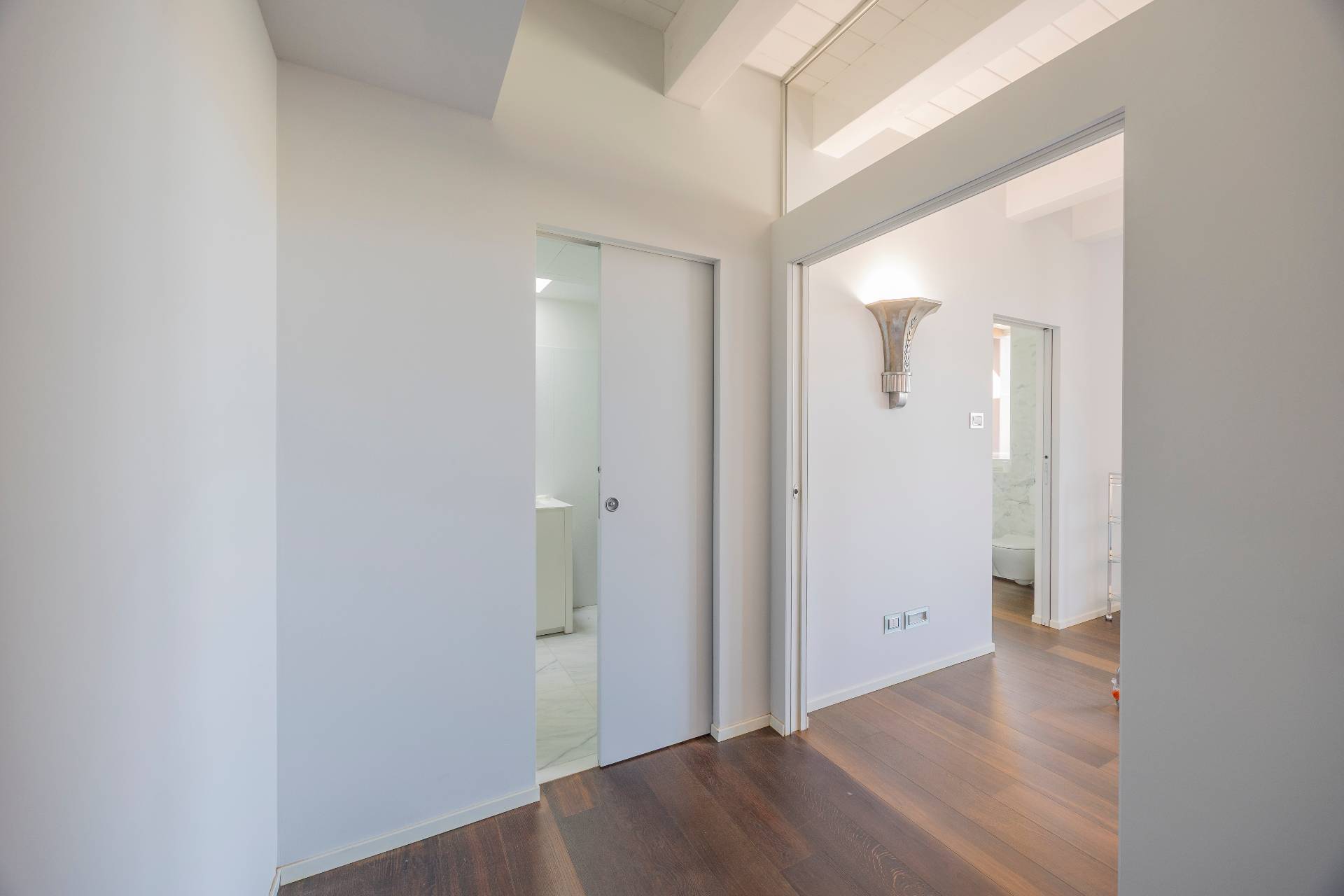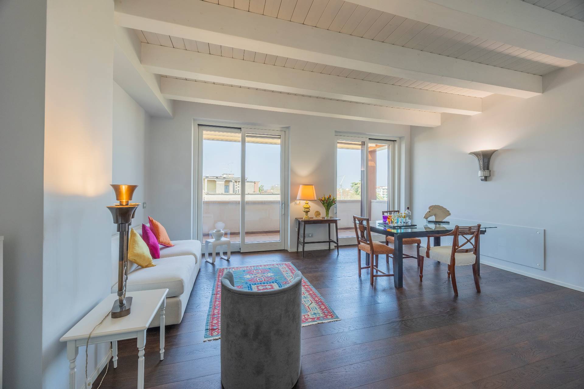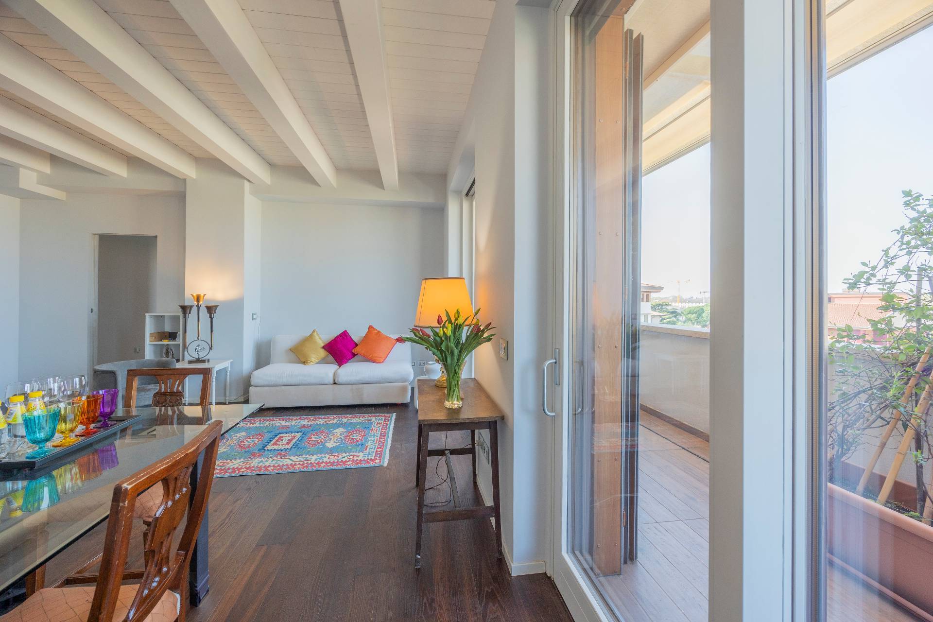 L’appartamento si trova al quinto e ultimo piano, una posizione che regala massima privacy, luminosità naturale e una vista aperta che valorizza ulteriormente gli spazi interni. Il terrazzo, particolarmente ampio, rappresenta un valore aggiunto: ideale per pranzi e cene all’aperto, momenti di relax o per creare un angolo verde esclusivo in città.