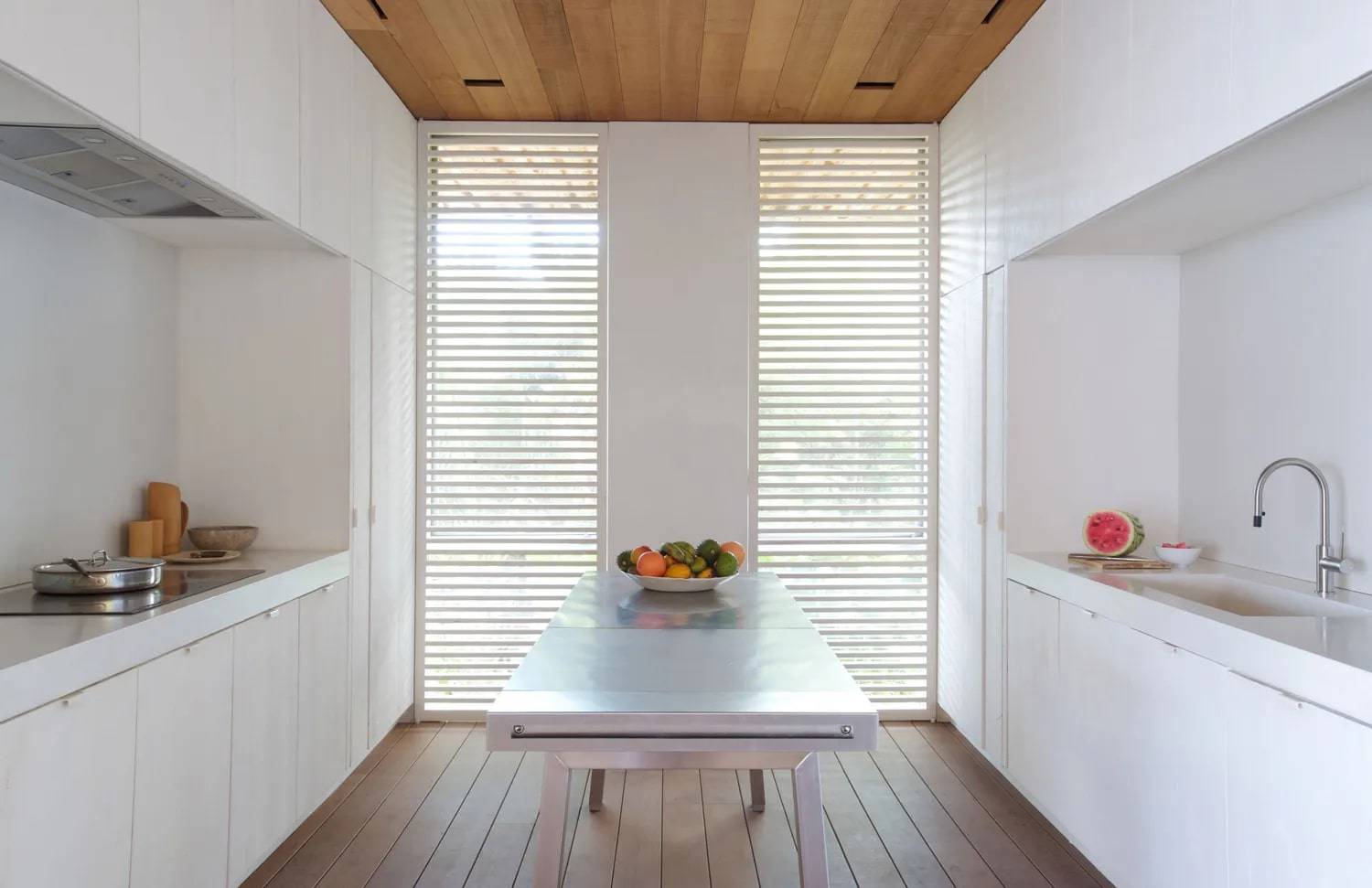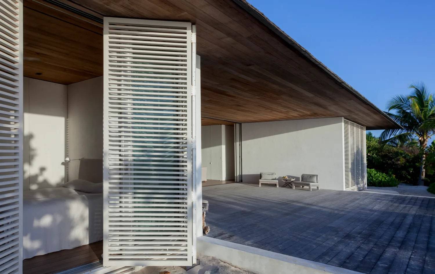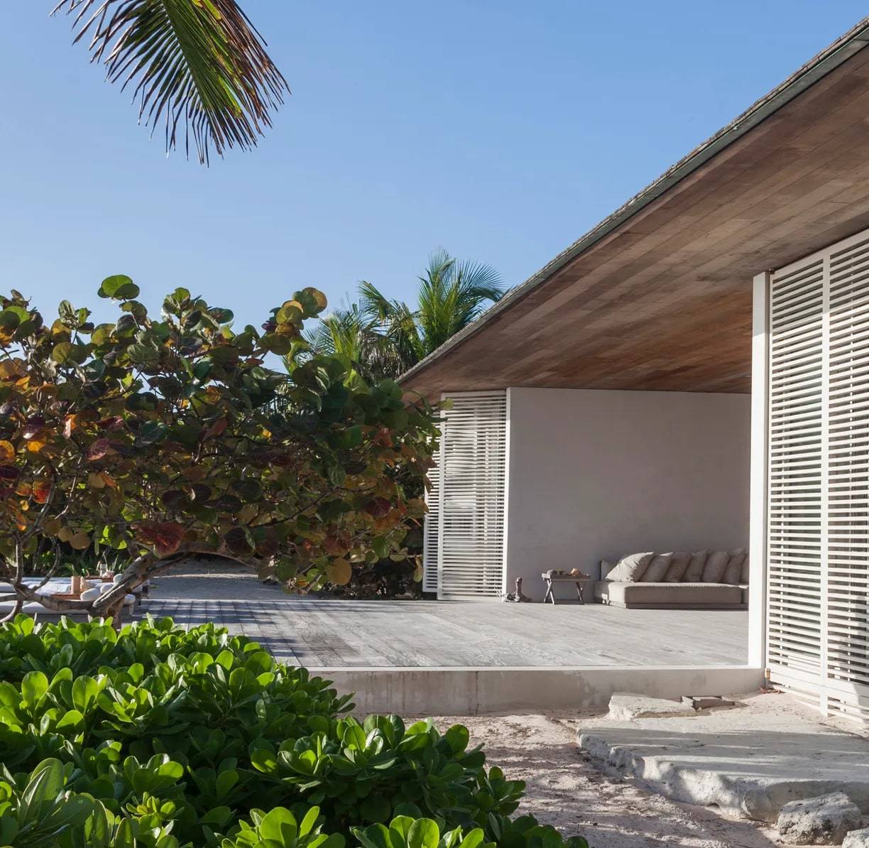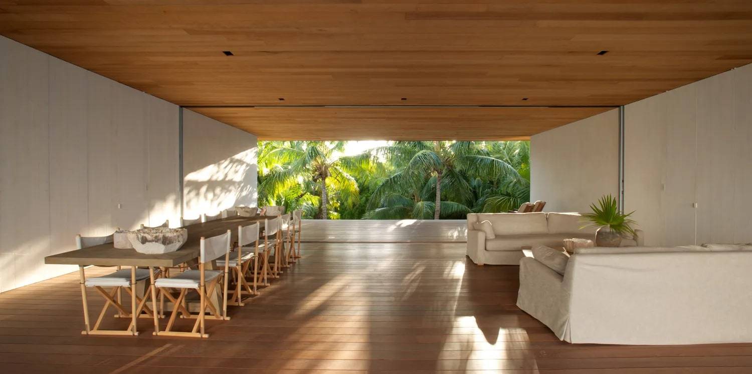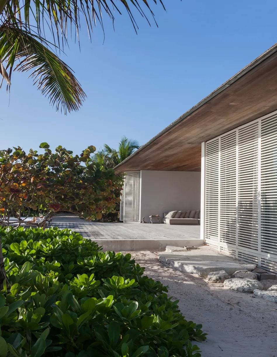 Situata sull’isola di Harbour, a breve distanza dalla punta settentrionale di Eleuthera, la maggiore delle isole Bahamas, questa residenza a due piani si erge su un banco di sabbia, da cui il nome “House on a Dune”, ed è concepita per esaltare la vista sull’Oceano Atlantico settentrionale che la circonda. Progettata con il territorio, non sul territorio, l’edificio si fonde con la natura, diventandone una cornice: forme, texture e spazi che rispettano e celebrano l’ambiente. Questa intrinseca bellezza e sobrietà derivano da una profonda comprensione e valorizzazione del luogo, unite a un’attenta collaborazione con costruttori locali e all’impiego di materiali autoctoni. La sua essenziale pianta rettangolare dispone la zona giorno principale, comprendente sala da pranzo e living, al centro del piano superiore. Ampie vetrate scorrevoli aprono interamente lo spazio sulle due terrazze in legno che si estendono sui lati. Quando completamente aperte, queste vetrate triplicano la superficie del living, creando un ambiente ideale per l’ospitalità e permettendo alla brezza marina di pervadere la casa. La residenza a due piani si erge su un banco di sabbia, da cui il nome “Casa sulla Duna”, ed è concepita per esaltare la vista sull’Oceano Atlantico settentrionale che la circonda.