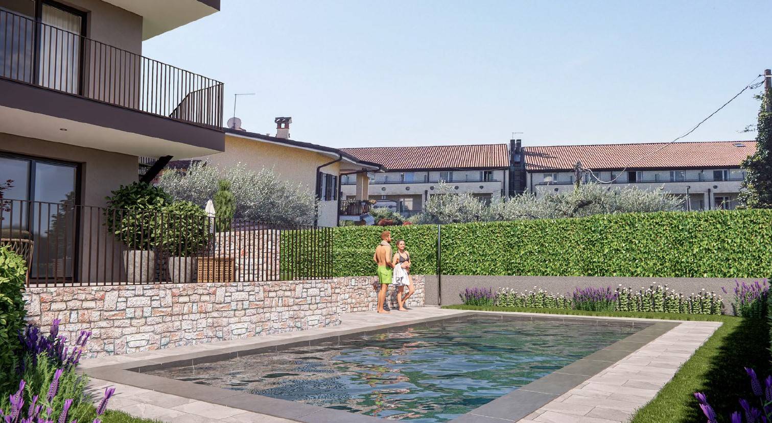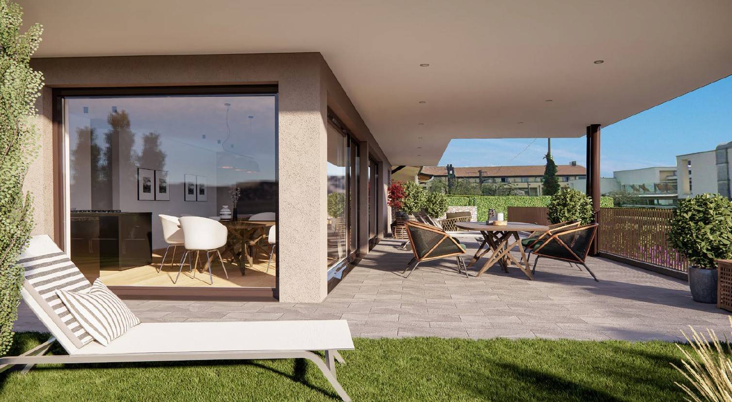 Punto di forza assoluto è la splendida terrazza coperta di circa 80 mq, perfetta per vivere momenti all’aperto in totale relax e privacy, con accesso diretto alla piscina condominiale.